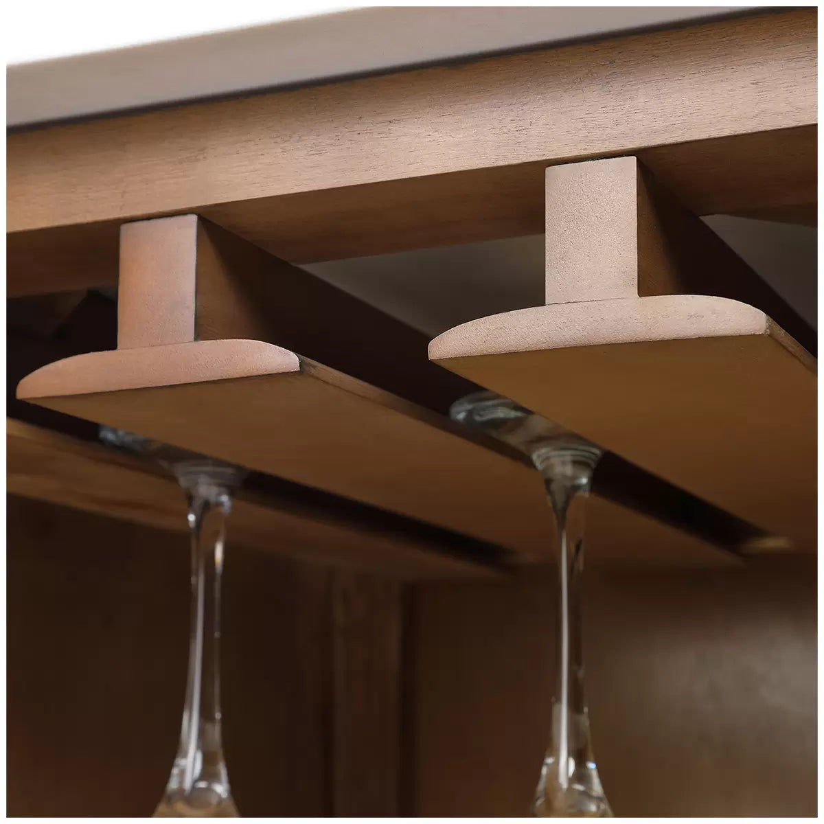 - Integrated hanging stemware rack holds up to 12 glasses